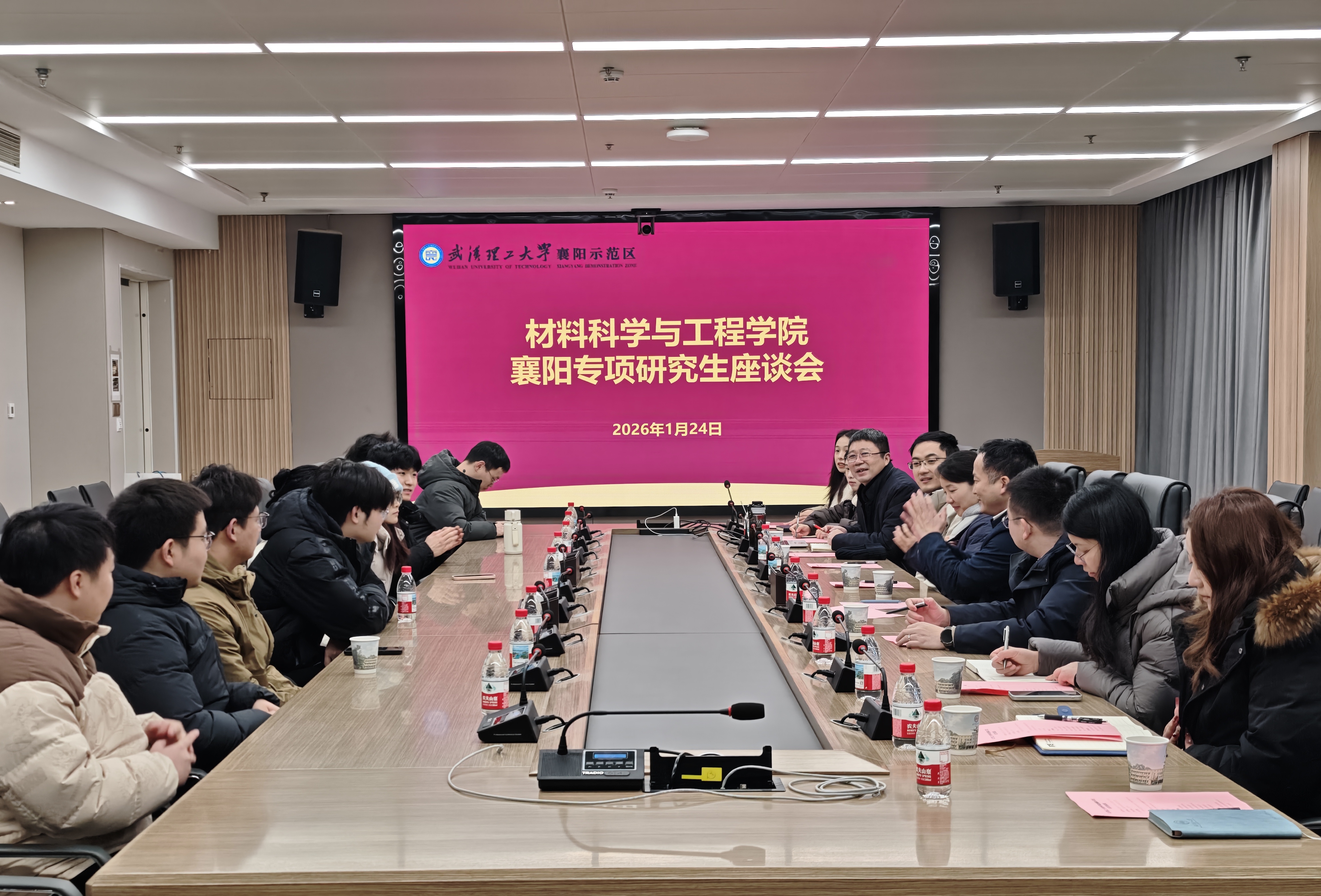 为深入了解襄阳示范区建设进展,实地考察材料学院襄阳专项研究生的学习科研与生活情况,进一步优化联合培养模式,1月24日,材料学院院长罗国强、党委书记罗小寒率班子成员及辅导员赴襄阳示范区开展专题调研。襄阳示范区相关领导、辅导员及材料学院襄阳专项研究生代表共同参与活动。