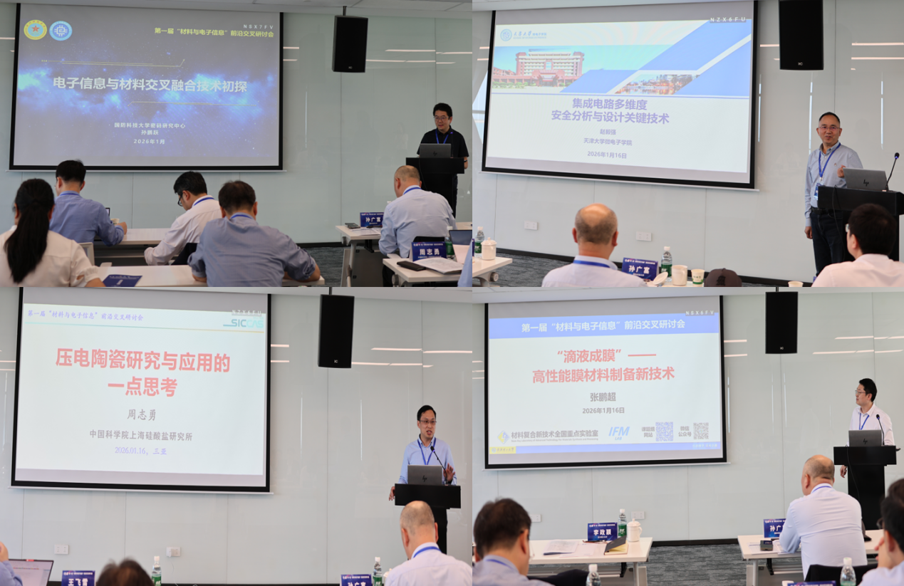 2026年1月15-18日,第一届“材料与电子信息”前沿交叉研讨会在三亚崖州湾科技城举行。本届会议由武汉理工大学材料科学与工程学院、武汉理工大学三亚科教创新园、国防科技大学密码研究中心和导航与时空技术国家级重点实验室共同主办,汇聚了来自国内顶尖高校、科研机构和行业的近五十位专家学者,旨在深入贯彻国家"十四五"科技创新规划中关于"强化战略性、前瞻性基础研究"的战略部署,推动材料科学与电子信息领域的深度交叉融合,探索前沿技术在国防和信息安全领域的新应用。