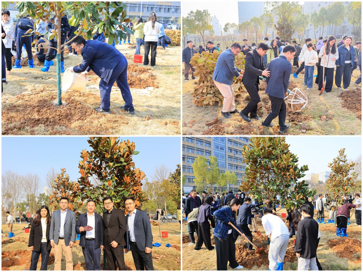 上午9时,师生们满怀希望与热情聚集在南湖校区东门附近,开始了植树活动。活动现场,大家分工协作、干劲十足,严格按照植树规范,依次完成挖坑、扶苗、培土、浇灌等每一道工序。铁锹起落间树坑成型,扶苗培土时默契配合,提桶浇水间倾注希望。短短数小时,数棵适配本地气候的树苗迎风挺立,为春日大地绘就出勃勃生机的绿色画卷。
