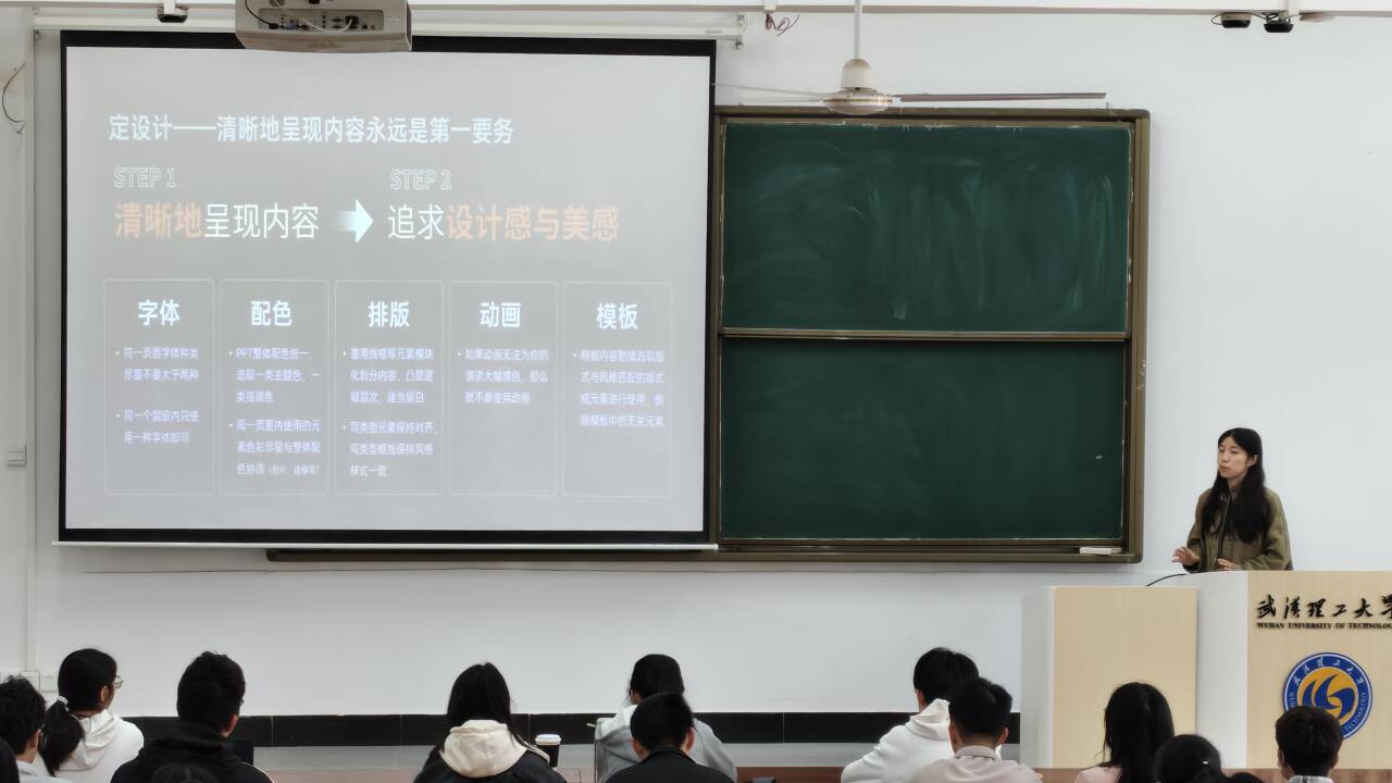 3月28日上午,材料学院“铸材”大学生创新创业基地在马房山西院东教学楼举办“铸材青年说”第一期科创赋能分享会,邀请材料学院优秀校友、武汉一方形色科技有限公司创始人、“铸材”基地指导老师肖谢妮娜作为主讲人,旨在帮助学生提升竞赛答辩、课程汇报与学术展示中的PPT制作水平。材料学院副院长沈杰出席活动并致辞,众多学生到场学习。